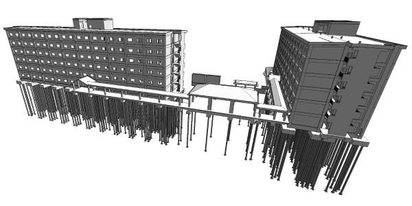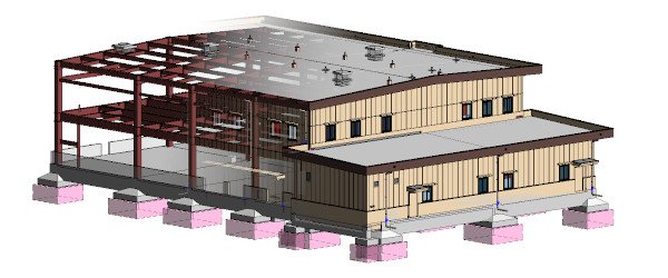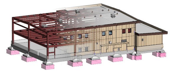 Composite views I created revealing the structural model with the architectural model. 建築モデルと構造モデルを明らかにするために作成した複合ビュー。