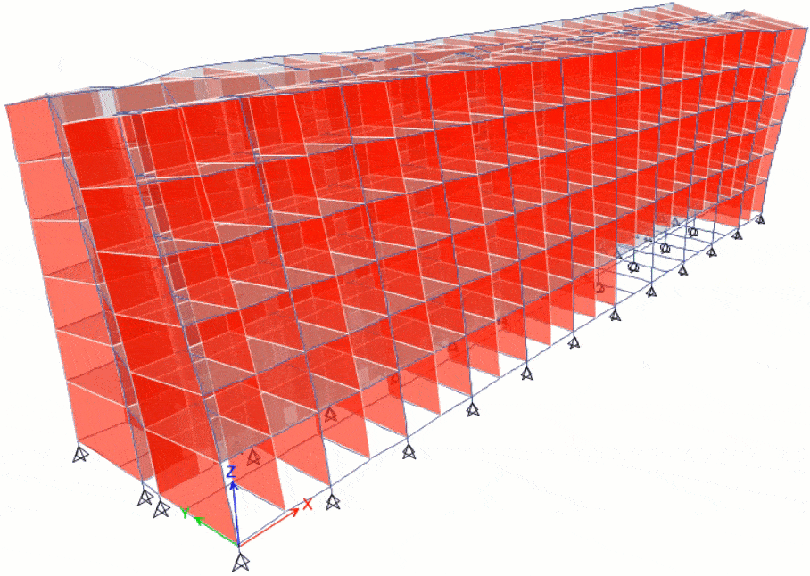 I have performed Modal RSA (linear dynamic) analyses to design frame and shear wall buildings, including all of my projects in Japan, constructed from both steel and concrete. The examples below show model views for a six-story concrete building I recently completed. 私はモーダル RSA (線形動的) 解析を実行して、鉄骨とコンクリートの両方で建設された日本でのすべてのプロジェクトを含む、フレームと耐力壁の建物を設計してきました。以下の例は、私が最近完成した 6 階建てのコンクリート建物のモデル ビューを示しています。